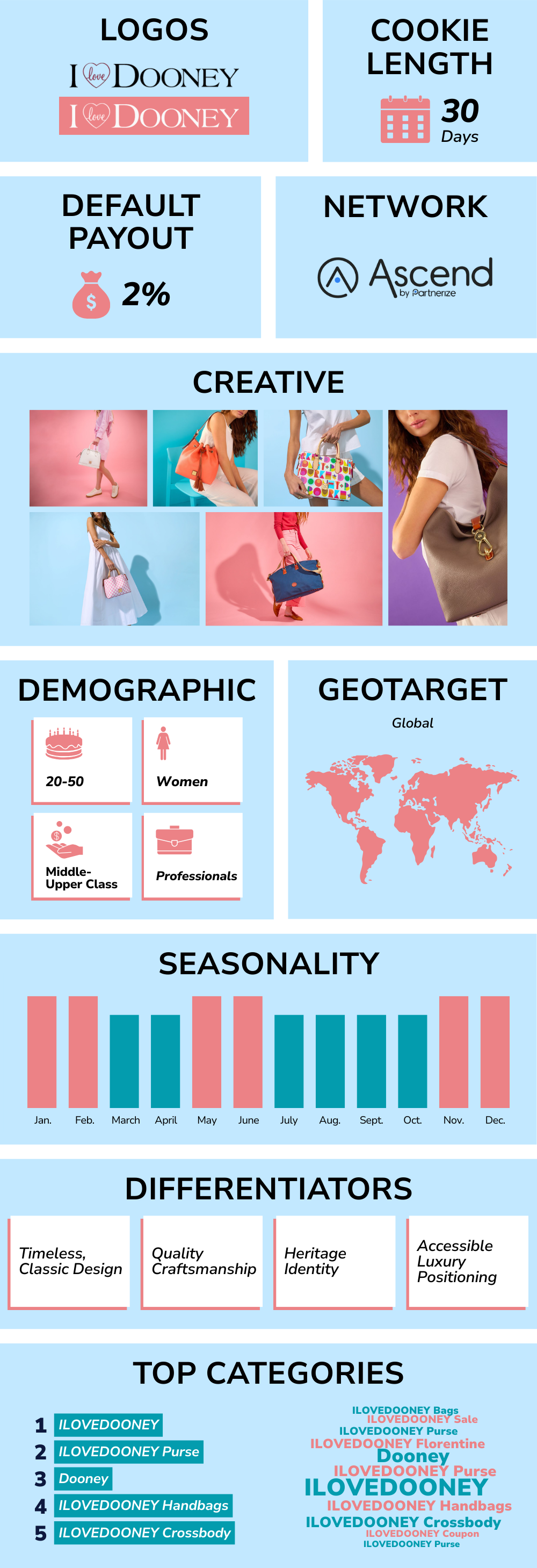 For partners, ILoveDooney presents a strong opportunity to feature luxury style for less. Affiliates can highlight the site in fashion and lifestyle content such as “luxury for less” roundups, designer handbag deals, seasonal style edits, and gift guides. With authentic Dooney & Bourke pieces, timeless designs, and frequent discounts on beloved styles, ILoveDooney is a natural fit for audiences looking for high-quality handbags at exceptional value.